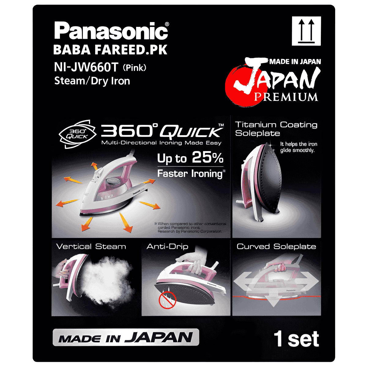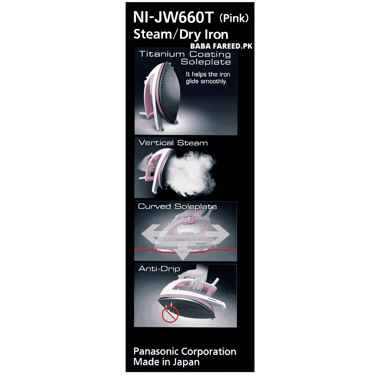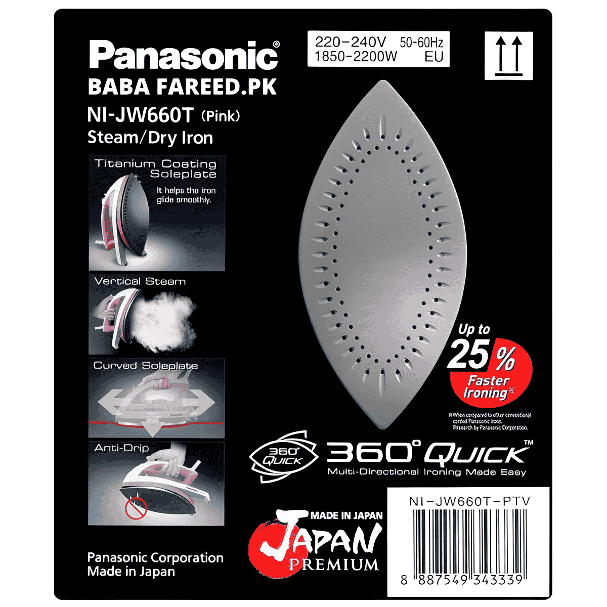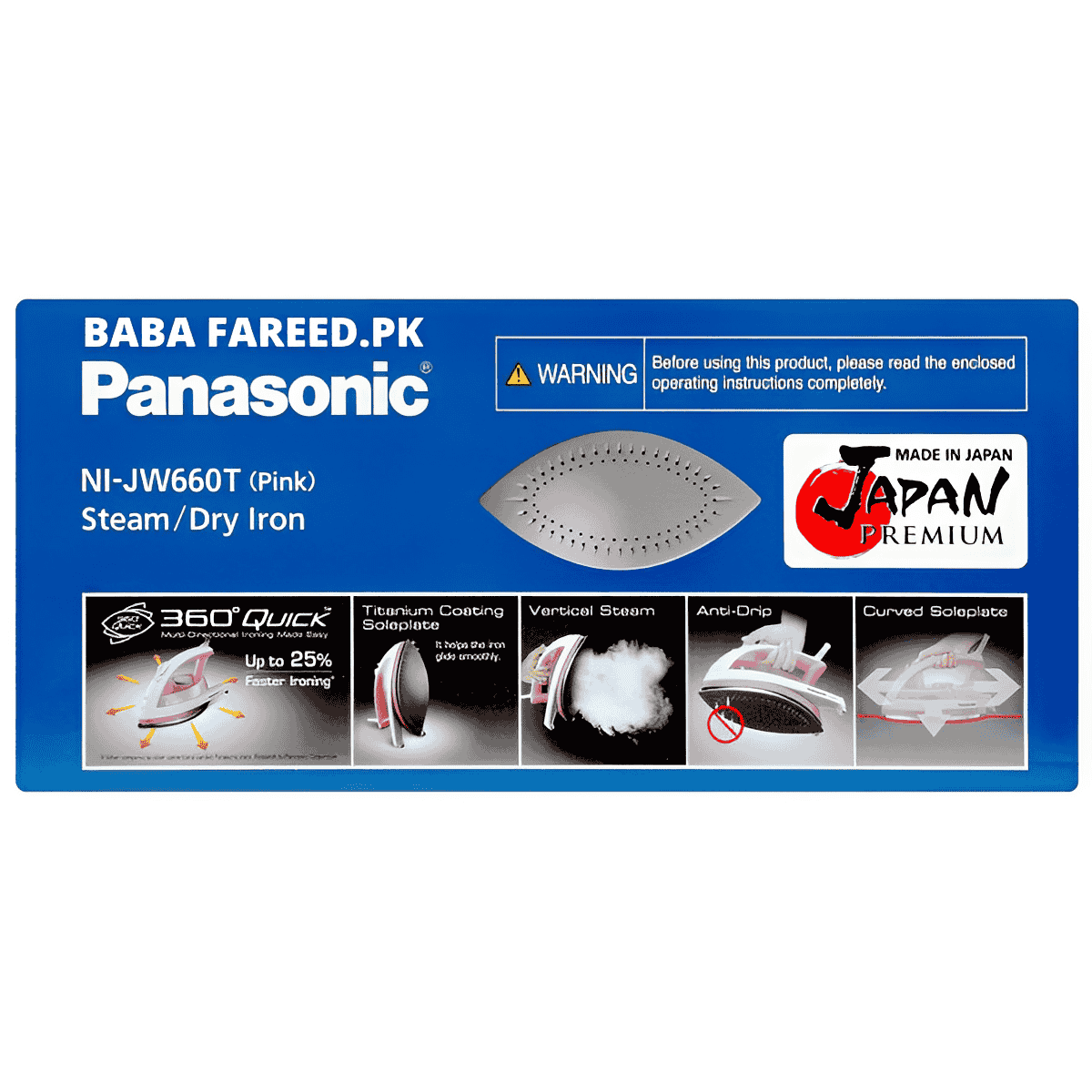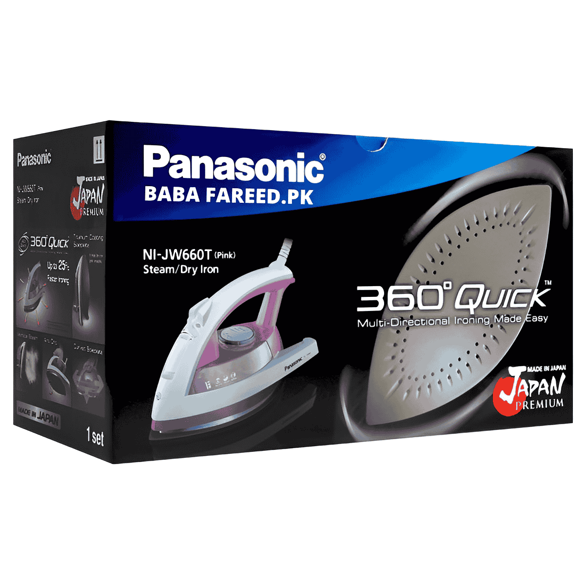 BABAFAREED.PK brings you the best price for Panasonic, 360 Steam Iron, (NI-JW660) with 1 years offiicial warranty and express shipping all over Pakistan.