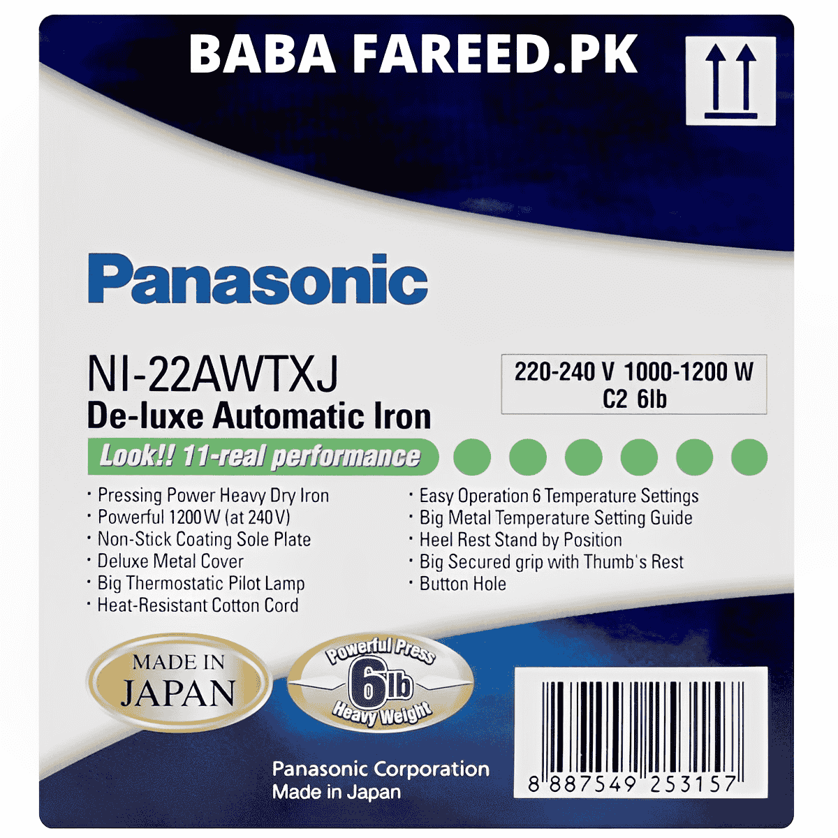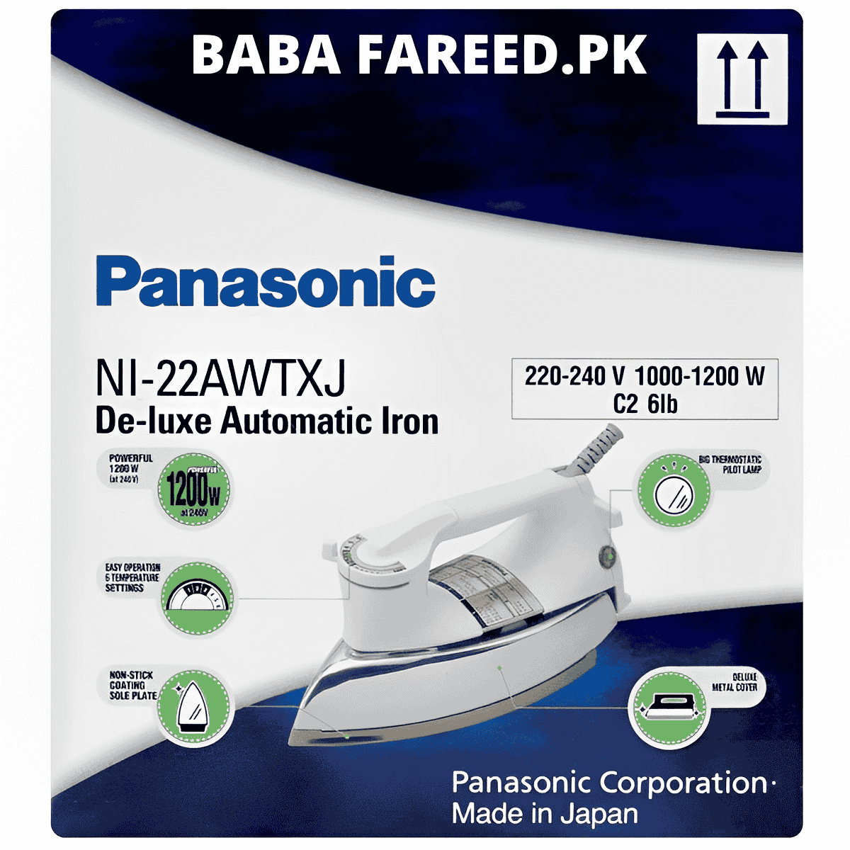 BABAFAREED.PK brings you the best price for Panasonic, De-Luxe Automatic Iron, (NI-22AWTXJ) with 1 years offiicial warranty and express shipping all over Pakistan.